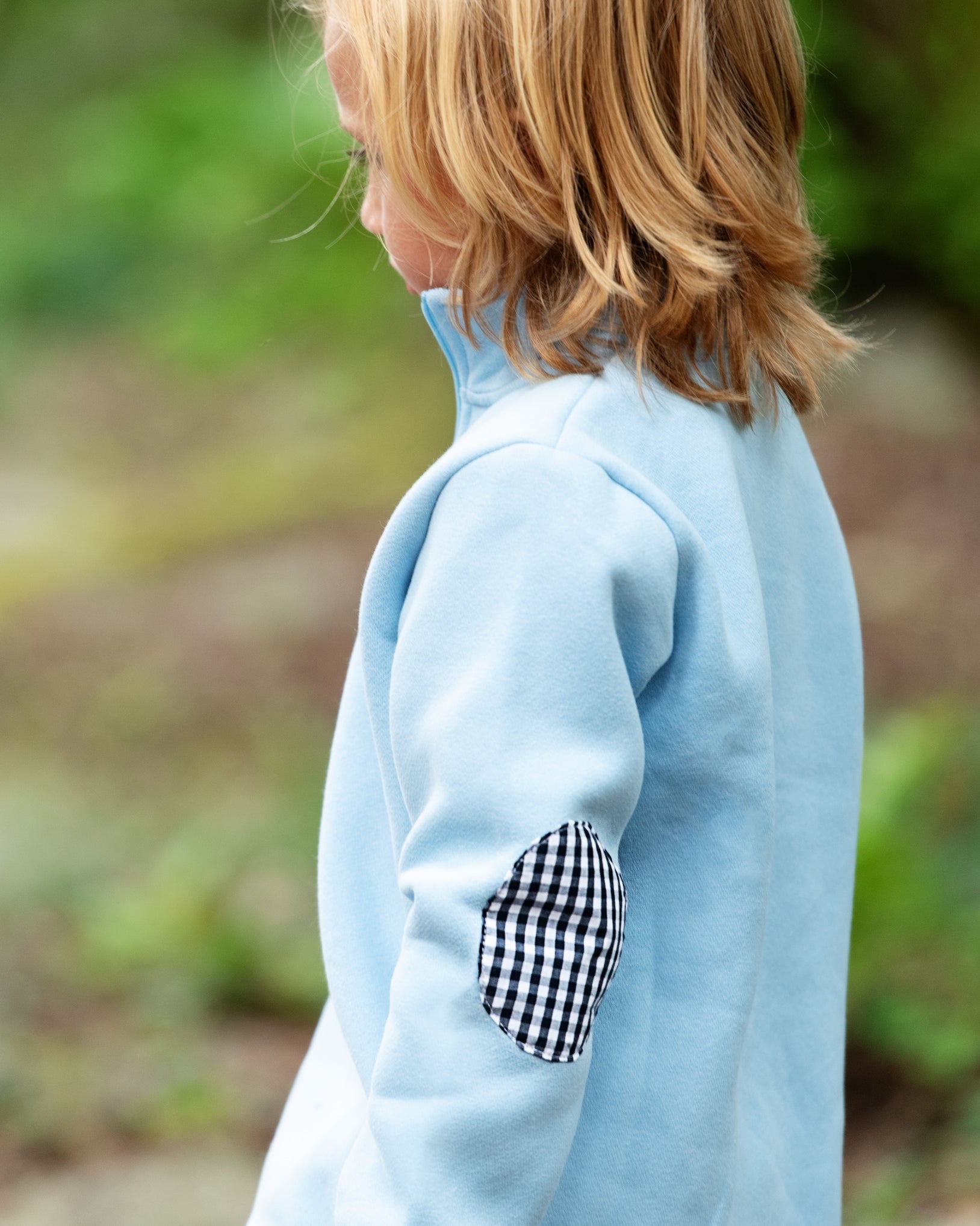1/4 Zip Pullover - Light Blue and Navy Gingham by Jellybean