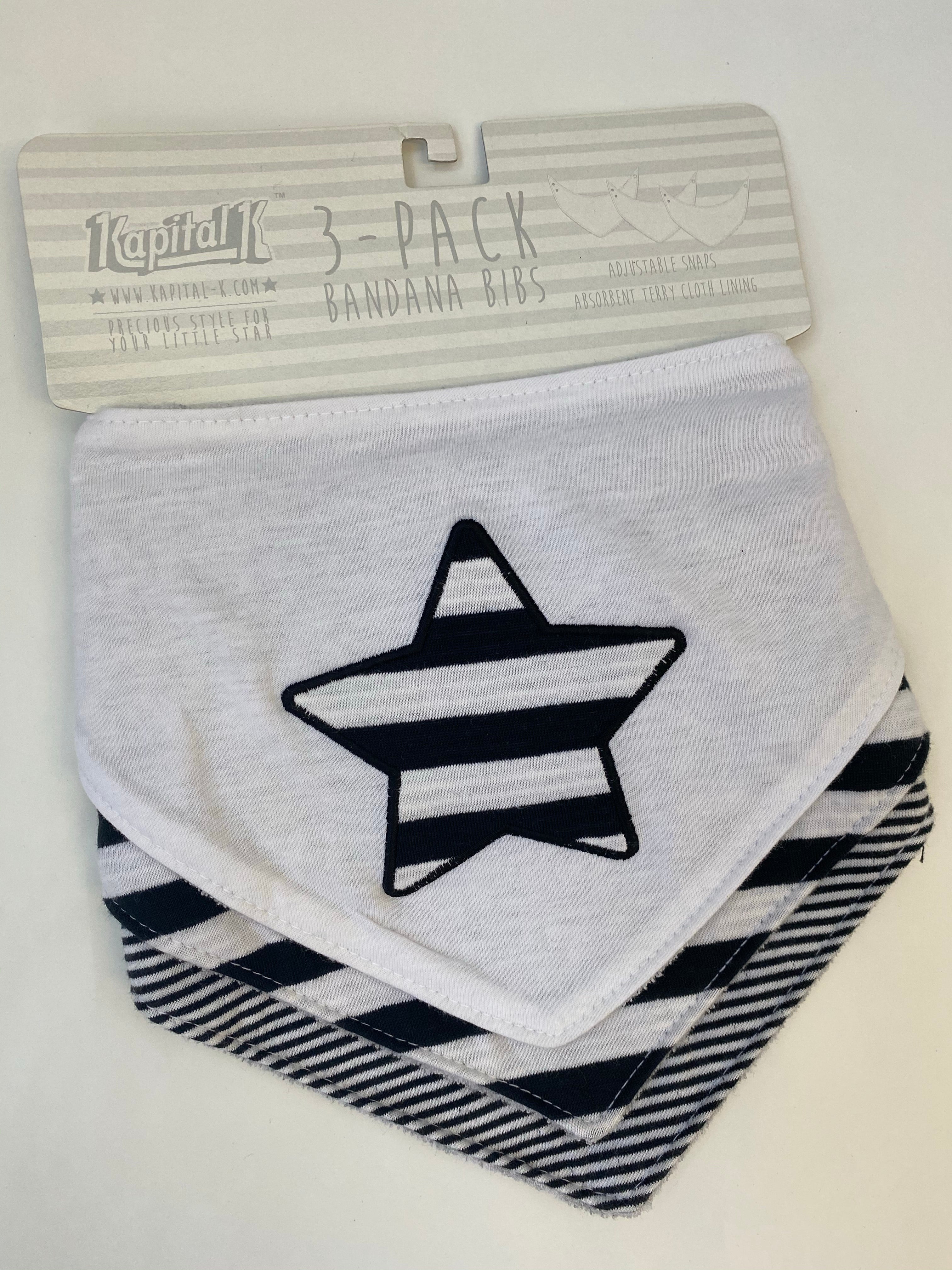 3 pack bandana bibs-black and white
