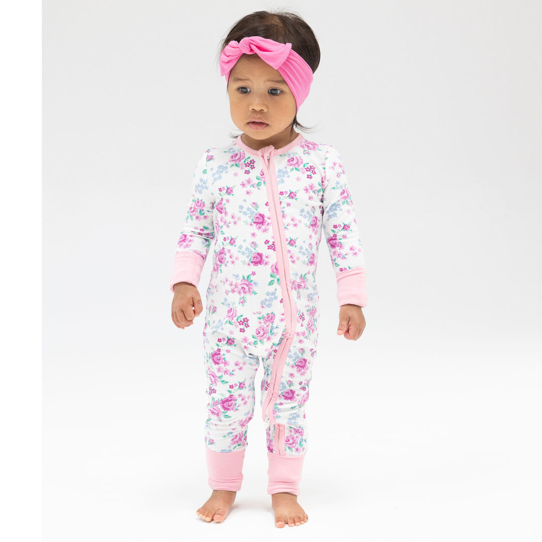 Baby girl footies and rompers are essential must haves for any new baby. We offer a unique selection of classic styles and beautiful prints and designs. Our curated collection includes gorgeous pima cotton fabrics as well as bamboo cotton. Shop our entire collection of baby girl footies and rompers here.