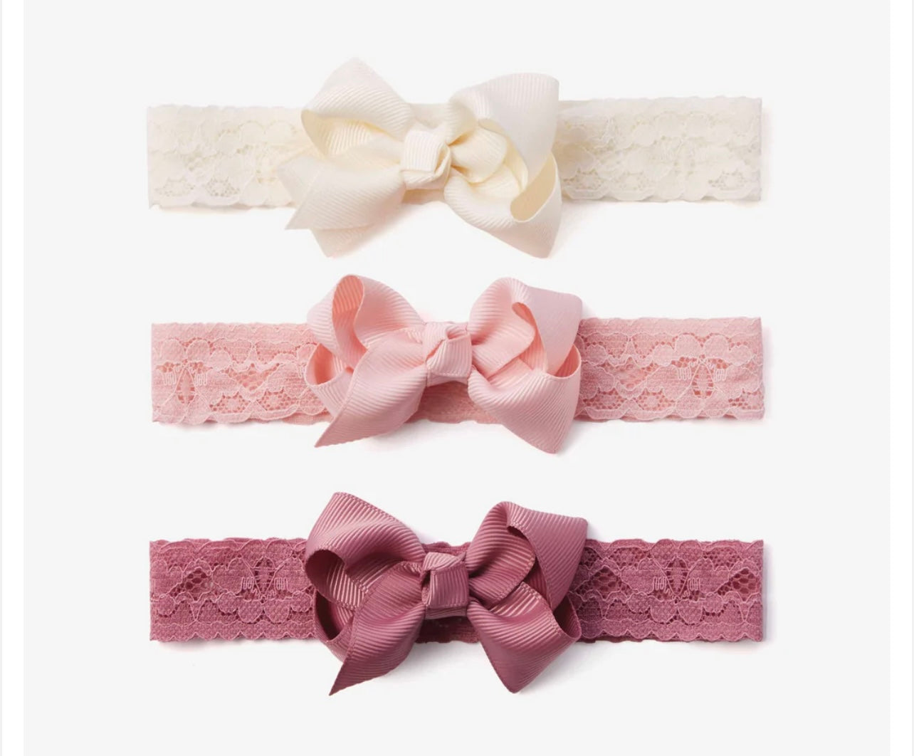 Sweet mini lace bows on a headband. Set of 3 headbands. One size.