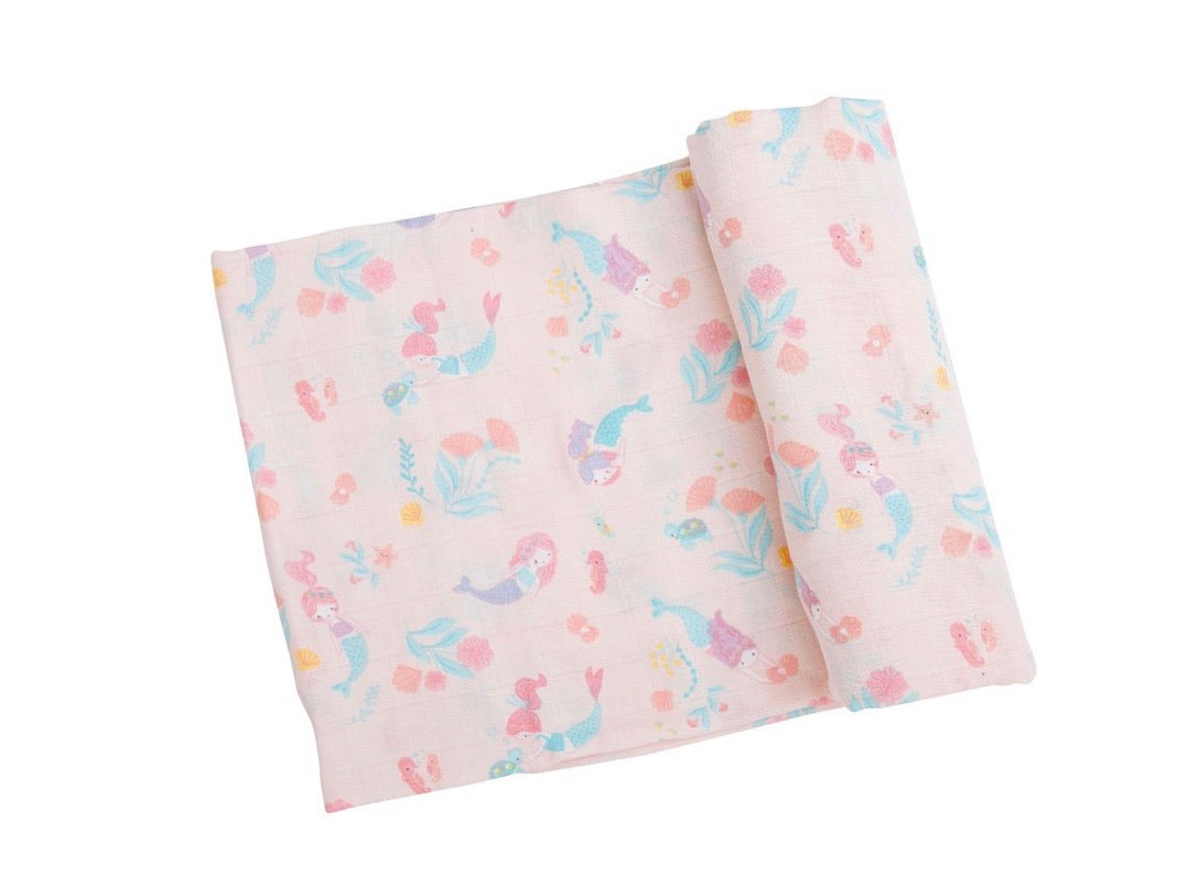 Muslin swaddle features mermaid design