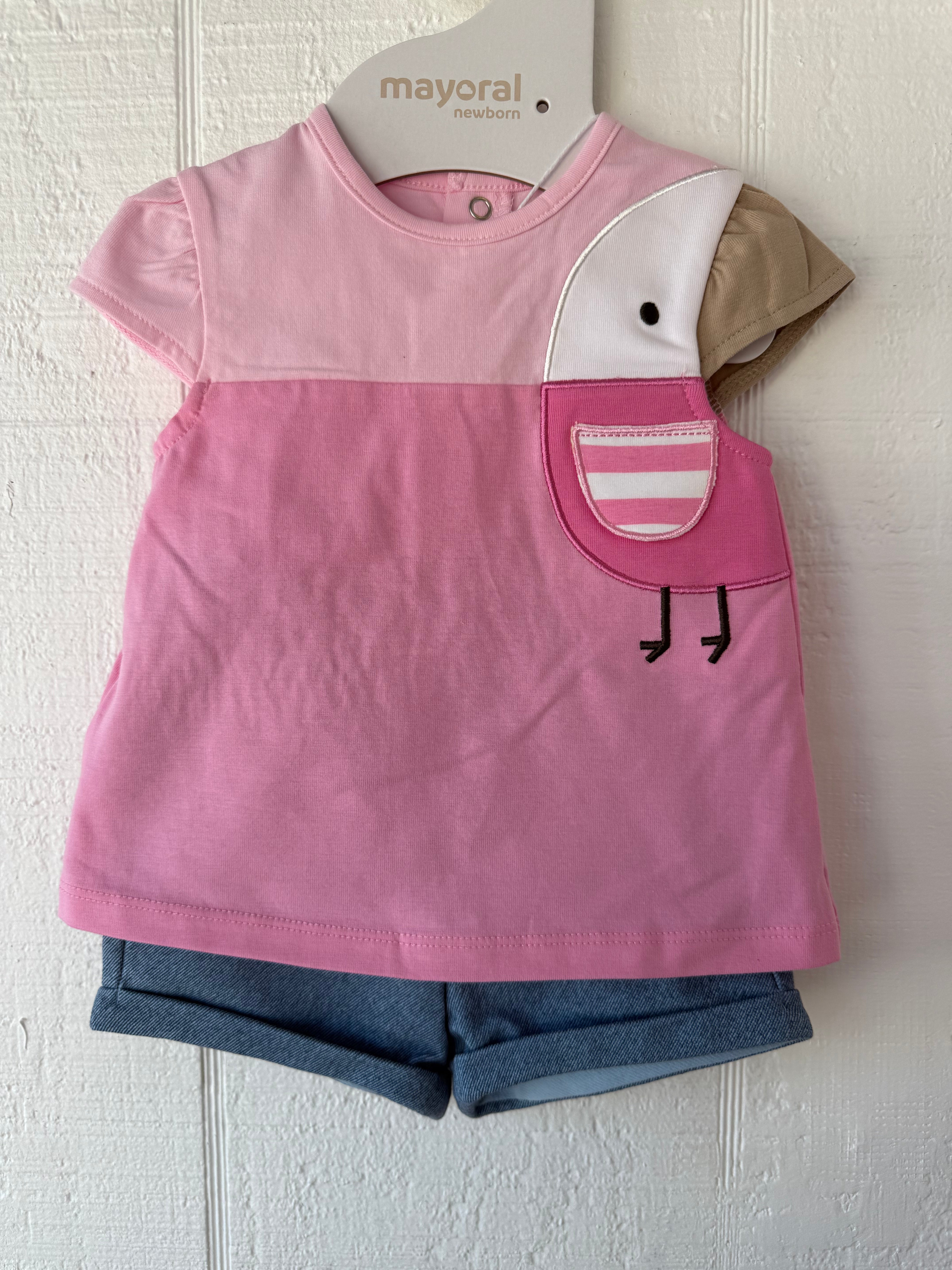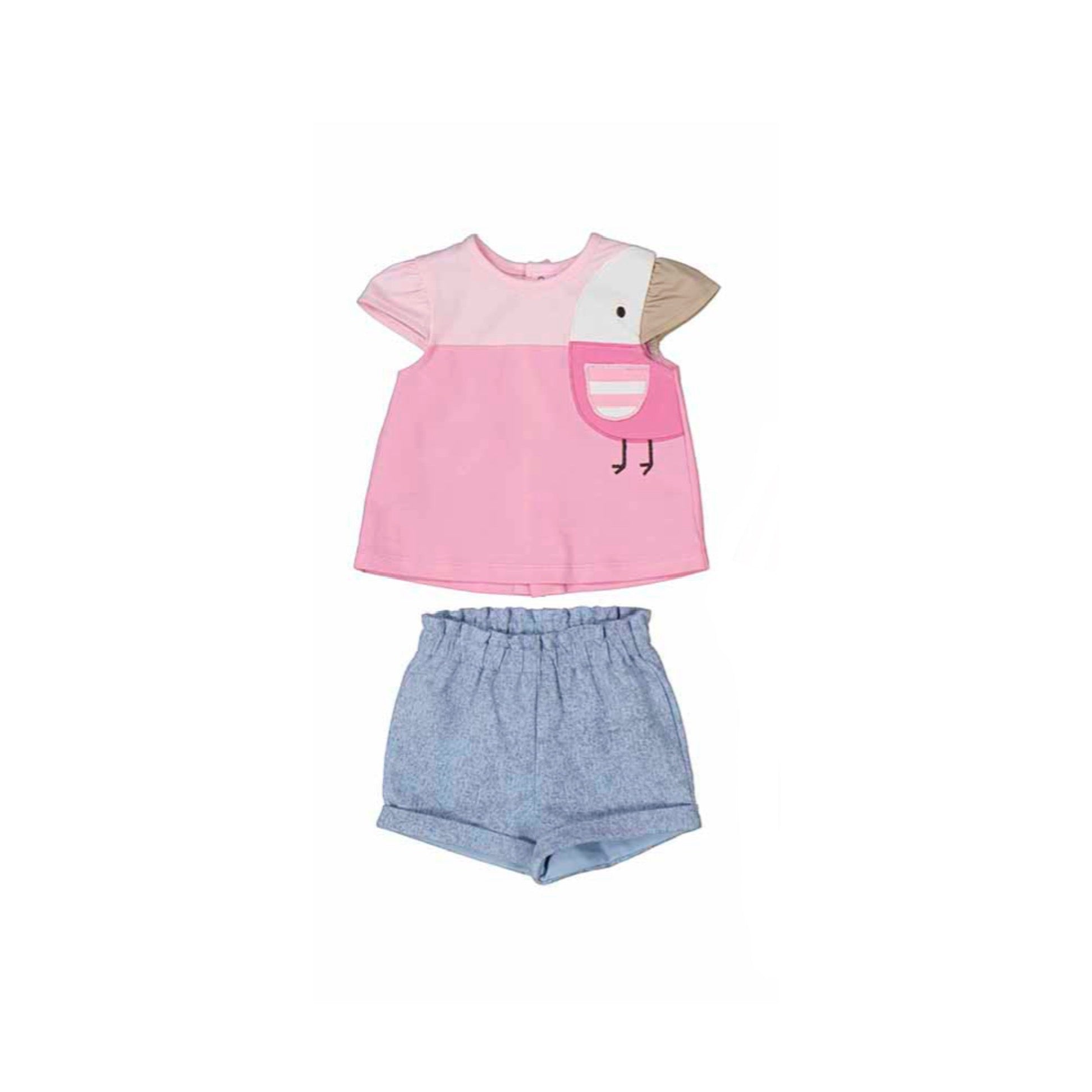 Pink Bird Top/Denim Short Set by Mayoral