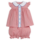 Adorable bloomer set features 2 pieces. Perfect little outfit for the 4th of July or a fun BBQ. What better way to celebrate! Star detailing on front of bloomer for an extra special touch. A little English classic!