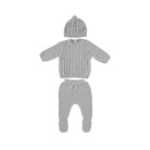 Gorgeous 3 piece set includes knit top, footed pants and coordinating hat.